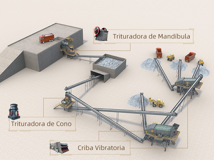 Generalmente, trituradora de mandíbulas se usa como trituradora primaria y luego trituradora de cono como trituradora mediana y fina. Trituradora de impacto también se usa para dar forma a la arena.